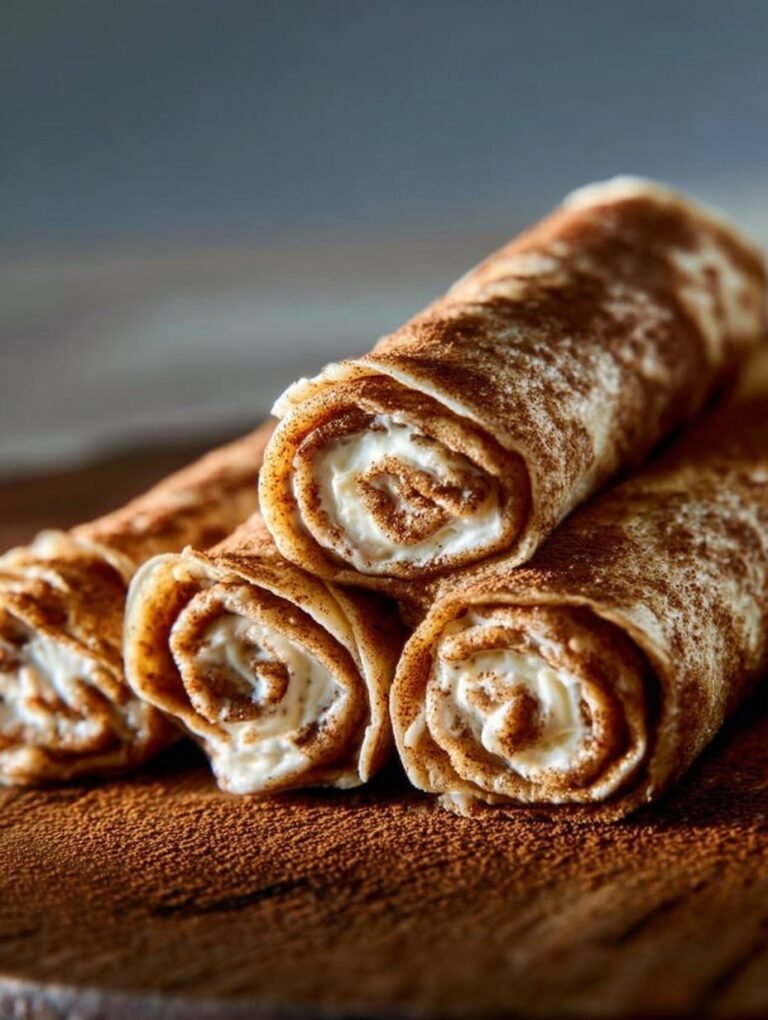 Expect a soft, slightly elastic crepe that browns delicately and folds without cracking. The oat flour gives a gentle grain that feels homey rather than gritty, and the Greek yogurt keeps the interior moist and tender. Cinnamon weaves through both the batter and the filling, creating those comforting warm notes you associate with baked rolls. The filling’s creaminess balances the crepe’s light chew for a satisfying mouthfeel. Finished with a sprinkle of extra cinnamon or a touch of sweetener, each bite is a compact cinnamon roll experience.