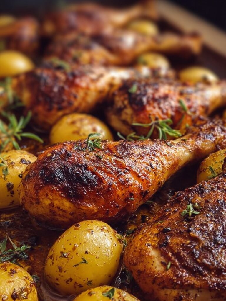 Crispy Oven Baked Chicken Legs with Tender Potatoes