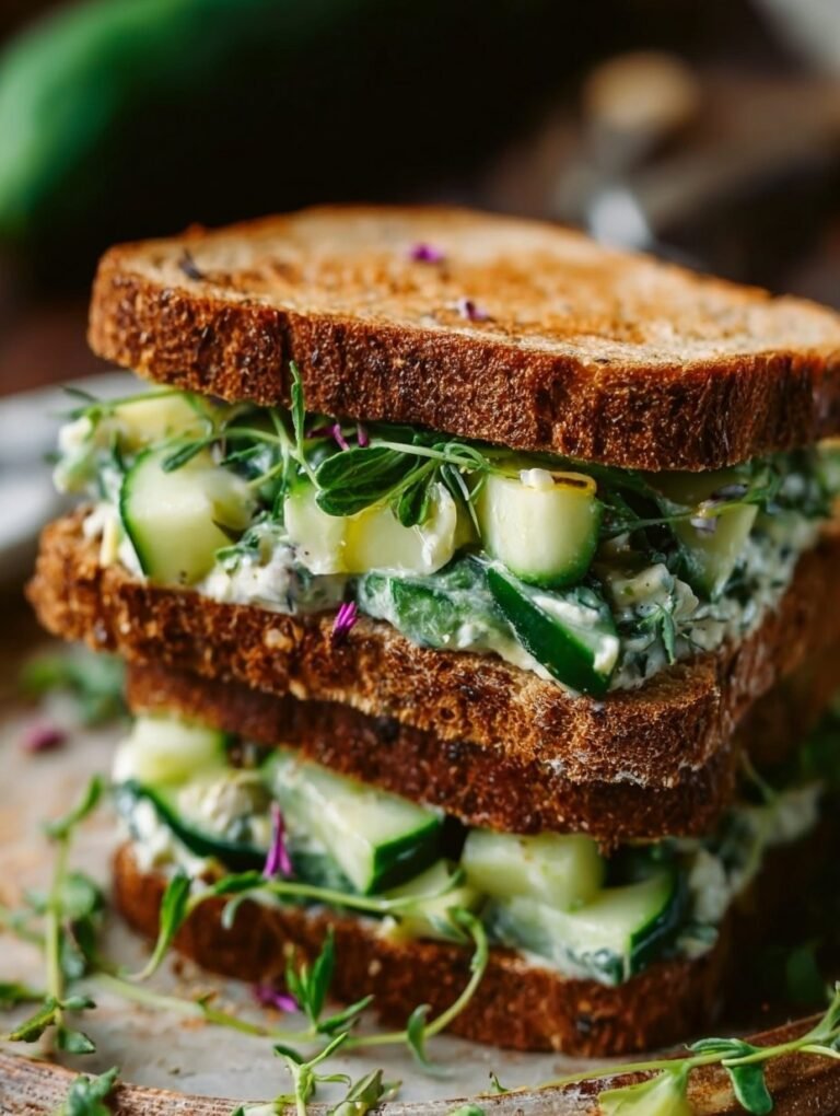 Light and refreshing cucumber salad sandwiches with a creamy herby spread, perfect for sunny afternoons or brunch.