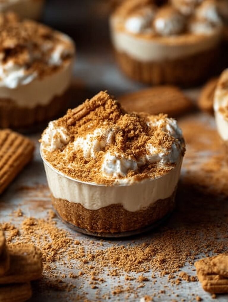 Creamy, crunchy cheesecake cups made with Biscoff cookies, perfect for last-minute desserts or a sweet treat.