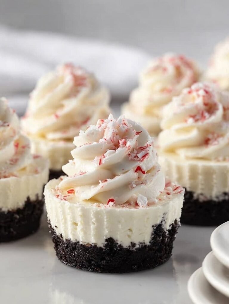 Use room temperature cream cheese to avoid lumps and achieve a perfectly smooth filling. Press the crust firmly into each liner so the base stays intact when serving. Do not overbake the cheesecakes; they will finish setting as they chill, keeping a creamy texture. Crush peppermint candies into small and medium pieces to add both flavor and texture. If you prefer a subtler mint taste, reduce the peppermint extract slightly and rely more on crushed candy for aroma.