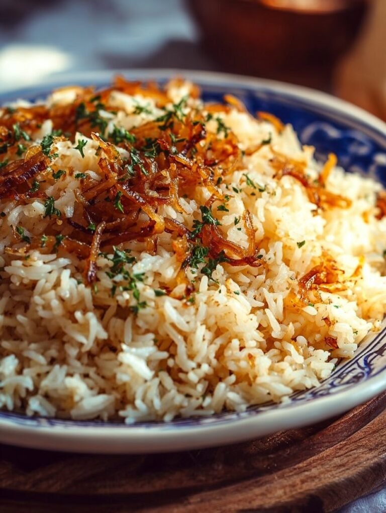 The caramelized onions add a soft jam like quality that melts into the rice for silky mouthfeel and rich aroma. Butter creates a glossy finish and a gentle, rounded flavor that carries the savory notes. The cooked rice becomes fluffy and light while still holding pockets of onion sweetness in each spoonful. If you want a little brightness, a sprinkle of fresh parsley adds color and a hint of herb freshness. Serve alongside roasted vegetables or a simple protein for a balanced plate.