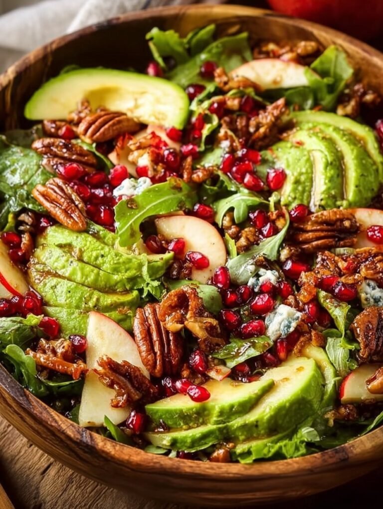 This salad shines because it is both effortless and elegant, perfect for busy hosts who still want a standout dish. It uses fresh, seasonal ingredients so each forkful tastes bright and clean without a lot of fuss. The dressing is quick to whisk and clings to the leaves without weighing them down, making the salad ideal to prepare shortly before serving. The combination of creamy feta and crunchy walnuts creates satisfying contrast that guests remember. Because components are simple you can easily swap or add ingredients to suit your pantry or dietary needs. For more holiday salad ideas, check the festive options in this Christmas salad collection.